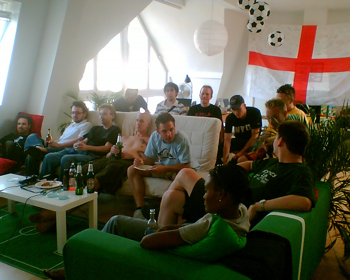 We have people from all over the world so there are fanatic and emotional fans watching the games and people chilling on the rooftop without a care in the world :).