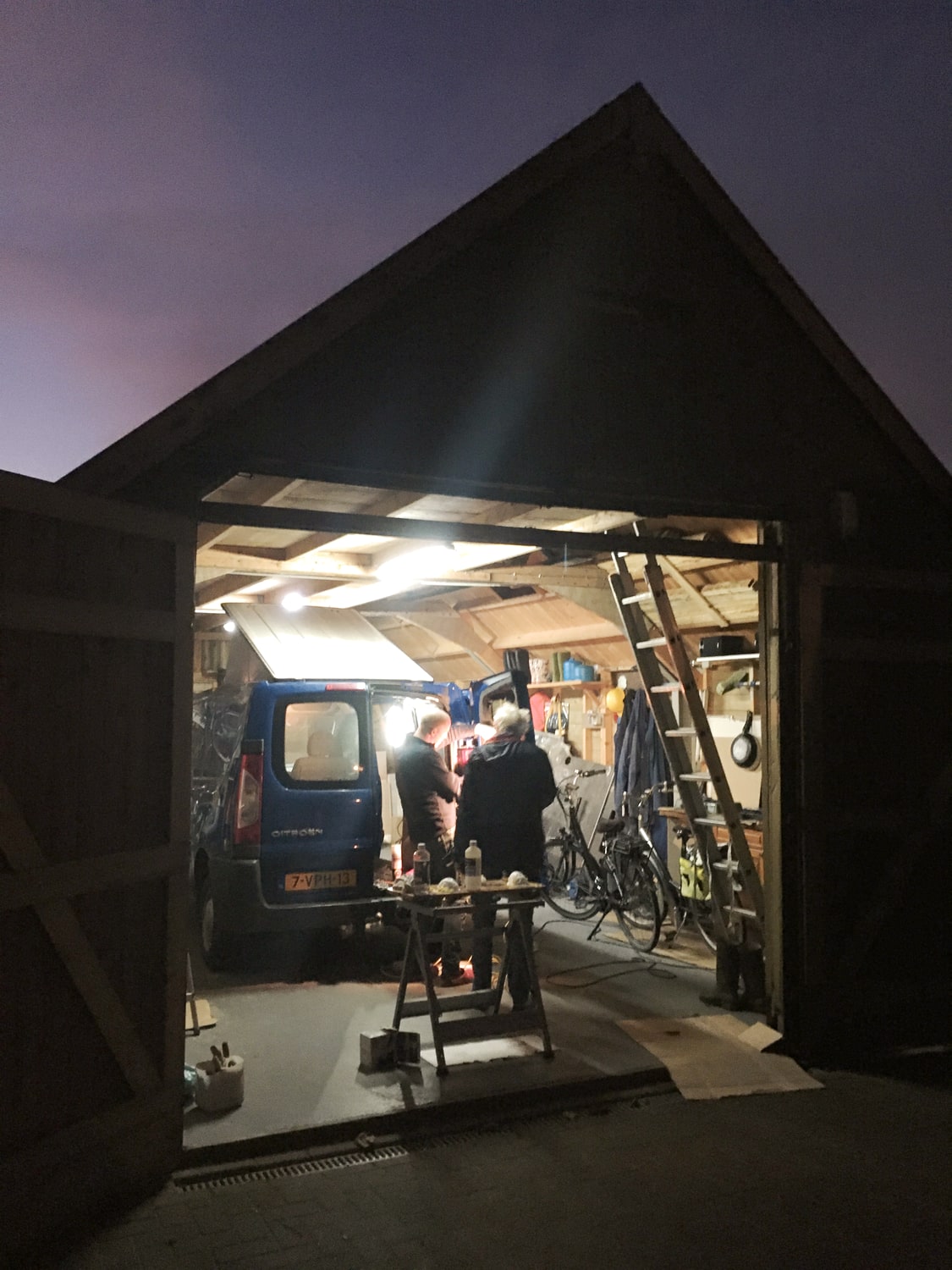 Op uitnodiging van mijn lieve ouders naar Ameland omdat het ombouwen van een bus naar een camper op straat zo zijn beperkingen heeft. Mijn ouders hebben een grote schuur waar de auto in kan staan. Achteraf kan ik gerust stellen dat het me op straat nooit gelukt was.
