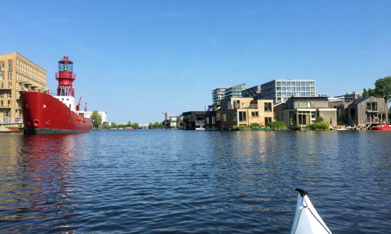 Naast de keuze voor lekker wat golven en het wijde water (i.p.v. de grachten) was het doel om eens te gaan kijken bij Schoonschip: “De meest duurzame drijvende wijk van Europa”. Dat heeft heel wat voeten in de aarde gehad om dat project te laten slagen maar nu is het er. En ik was er nog nooit geweest.