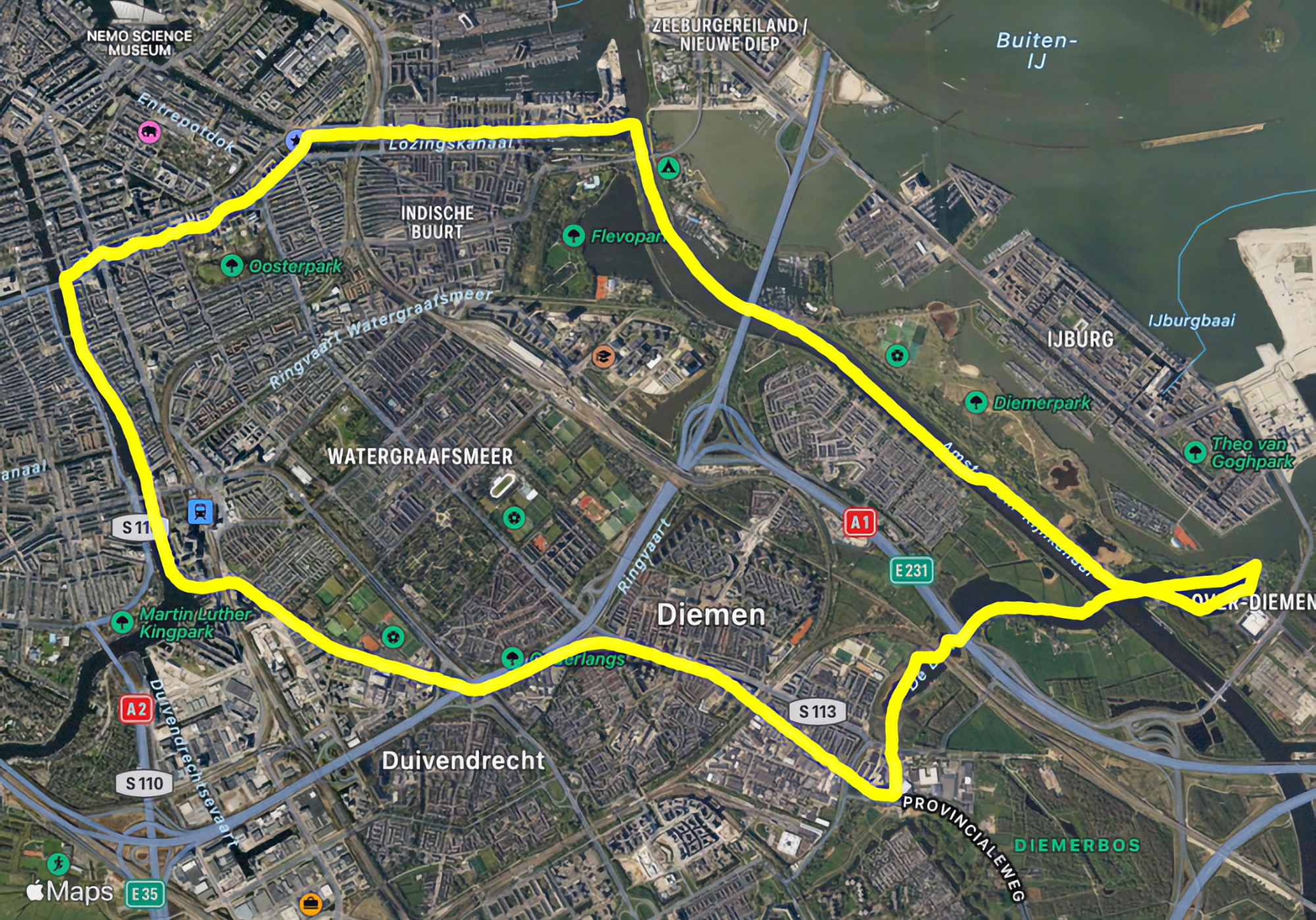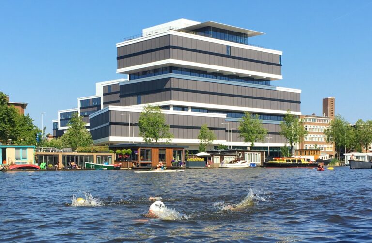 Toen ik de Amstel op voer kwam net de triatlon voorbij. Een hele groep zwemmers. Ook daar zeker 20 minuten stil gelegen. Onder de indruk van ze. En dan is dit maar een deel van het traject…