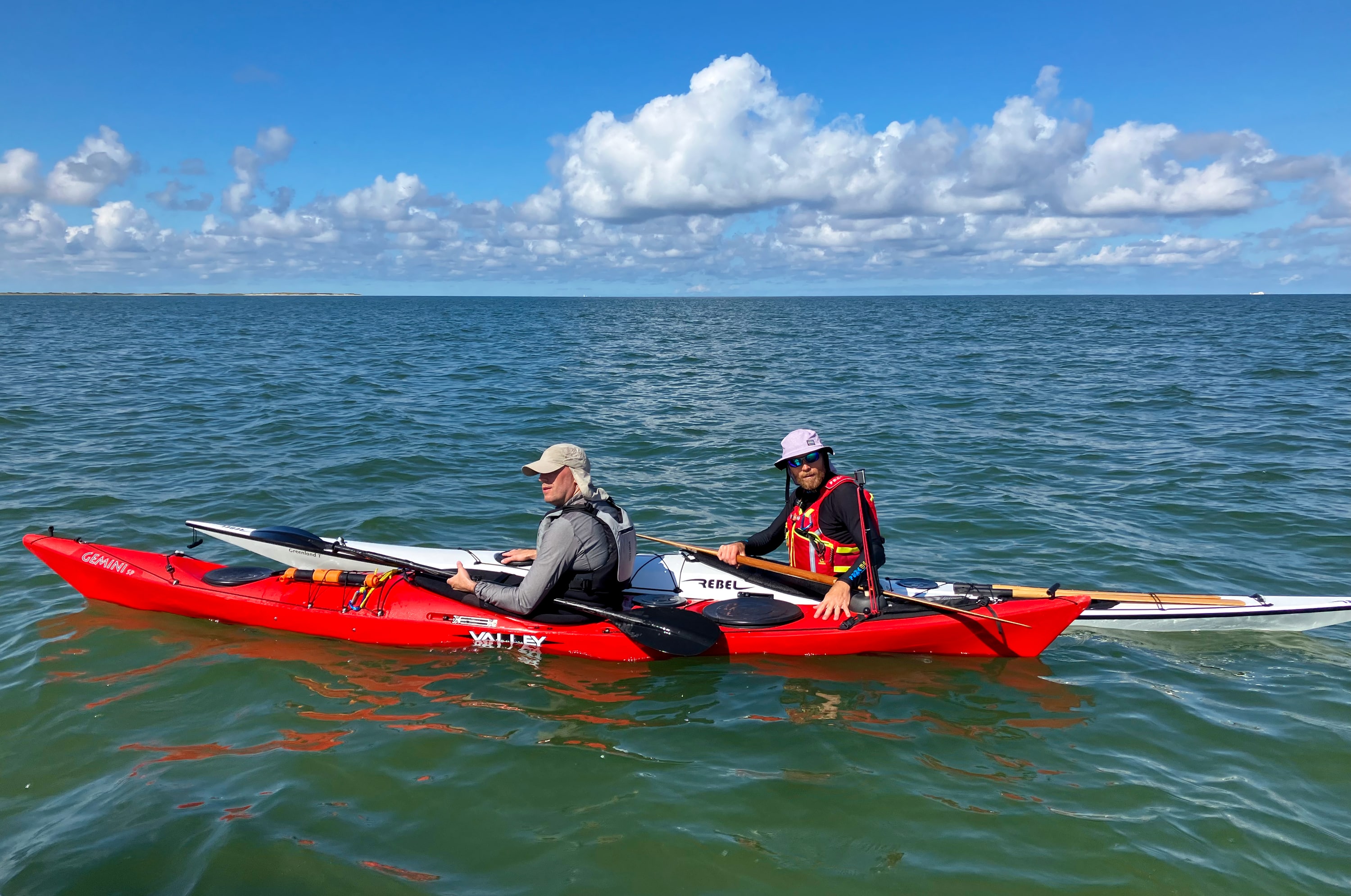Wat is het toch heerlijk om op zee te zijn. En in de kajak voel je je nog meer verbonden. De eerste keer is al weer jaren geleden op Texel en nu pas de tweede keer. Het is waanzinnig uitgestrekt, overweldigend eindeloos en levend, bewegend en ontzagwekkend. Een andere wereld waar je op spierkracht peddelend deel van wordt. Super om dit nu met mijn broer te doen.