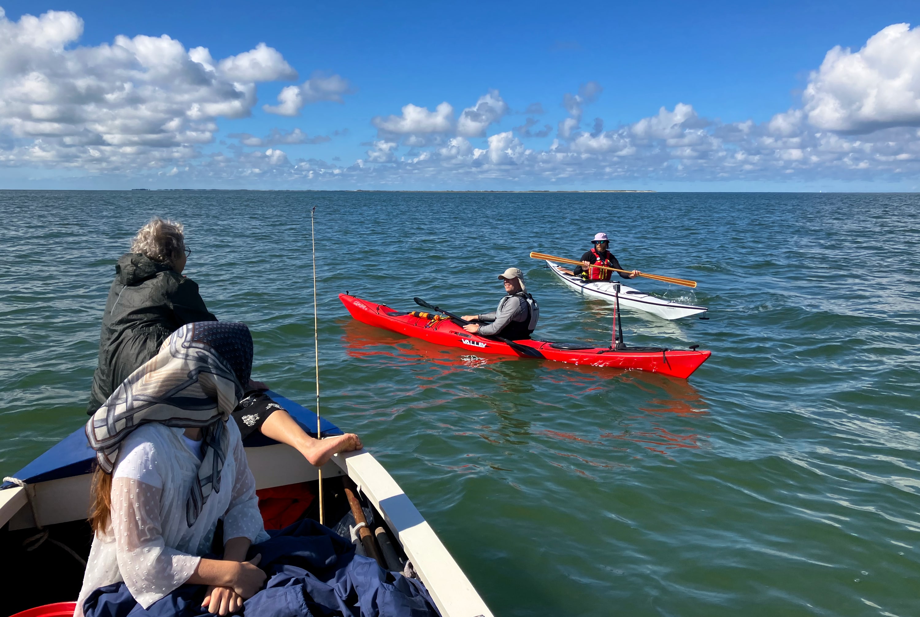 De zwermen vogels op de plaat zien dansen in de lucht, de stilte. De familie in de buurt. Het voelen van de dynamiek van de zee. En als toetje zeehonden die hun nieuwsgierigheid niet konden bedwingen en ons van dichtbij kwamen bekijken op maar een paar meter van de boot.
