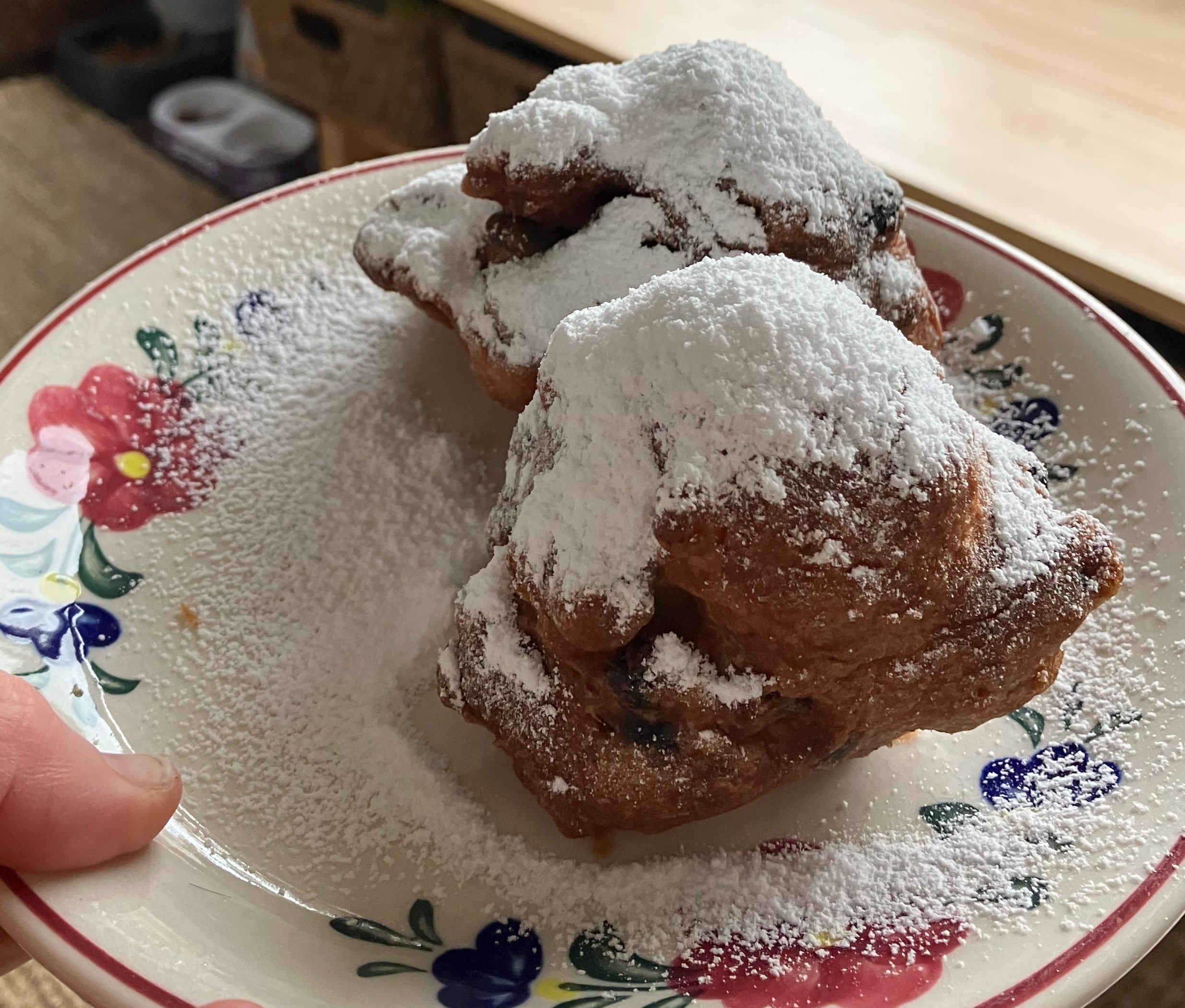 Toen ik regelmatig even naar de overkant was met de camper in aanbouw kocht ik altijd oliebollen. Dus soort van traditie geworden :)