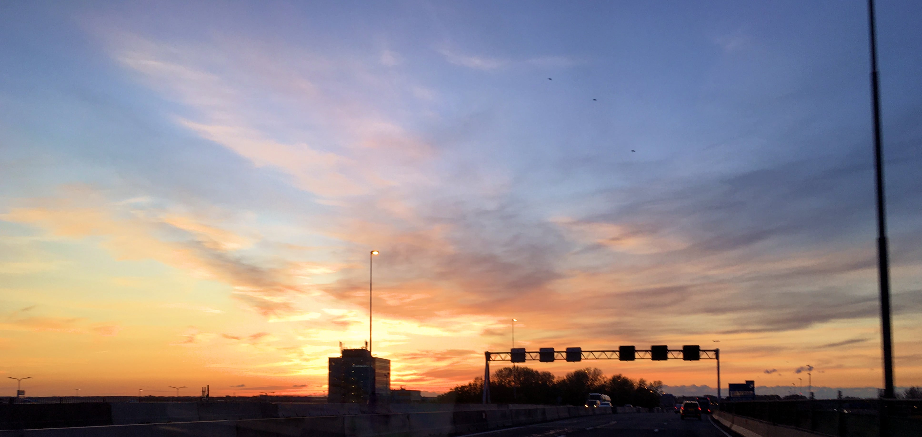 Reed vandaag op een elektrische bus. Dus dan is de pauze op een laadplek. Was op dezelfde plek als waar ik op mijn eerste dag stond. Best nostalgisch. Ook weer op dezelfde plek gaan staan om het maar wat aan te dikken. Zestien palen daar, helft vol ongeveer bijna allemaal taxi’s. Het is nu mooi groen vergeleken met januari. En aan het eind van de dienst mogen genieten van en klassieke zonsondergang.