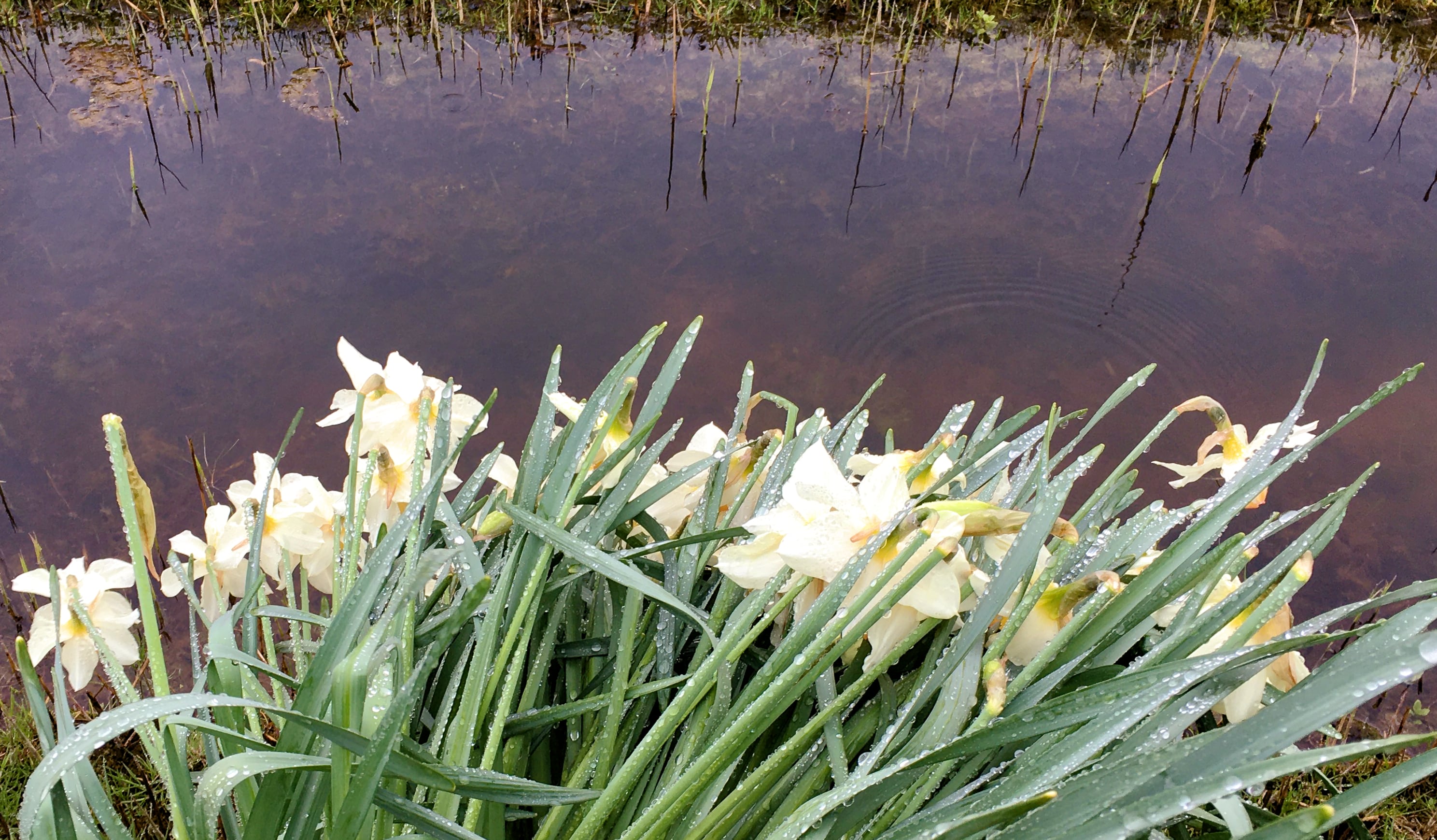 Voelde me een beetje als deze Narcissen. Over hun piek heen, nat en hangend door zwaartekracht, wind en water.