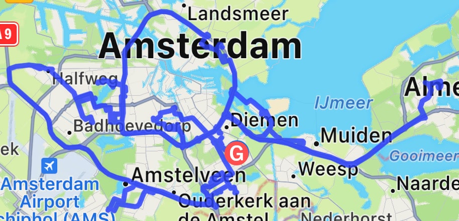 - Was aan het begin stoffig en benauwd en niet direct super weer. Toch veel zwemmers, tuingenieters, kajakkers, bloemenplukkers (gearrangeerd in rugzakken en fietstassen). Dat het zondag is helpt natuurlijk ook.
