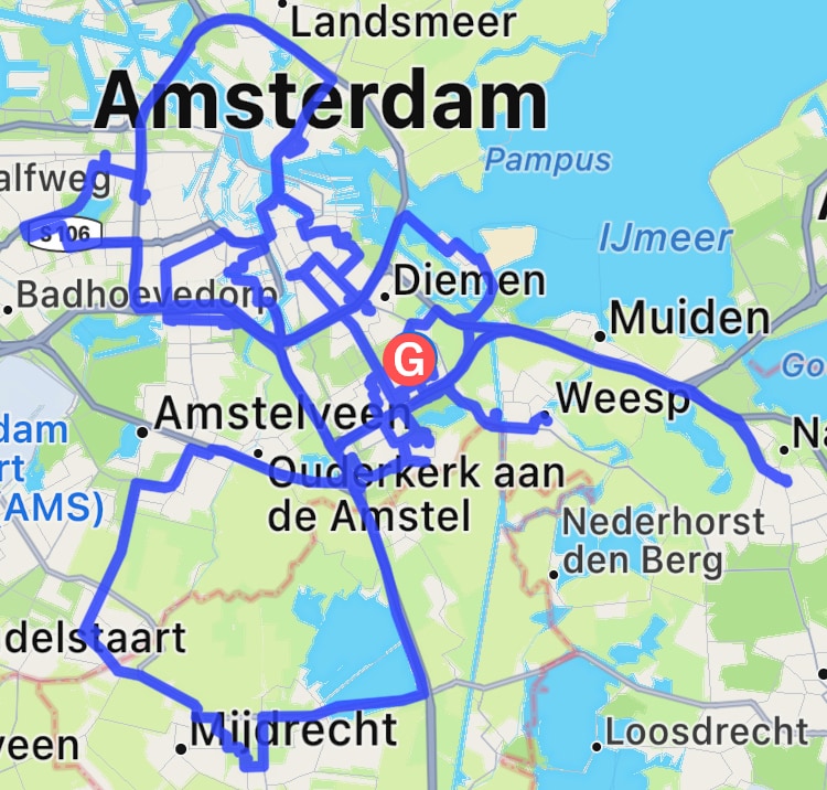 Rond de avondschemer reed ik vlak bij de Gaasperplas en zag ik een silhouet van een vos de straat oversteken. Vroeg het nog aan een passagier die daar woonde of dat echt kon of dat ik het toch verkeerd had gezien. Maar ze beaamde het. Geweldig.