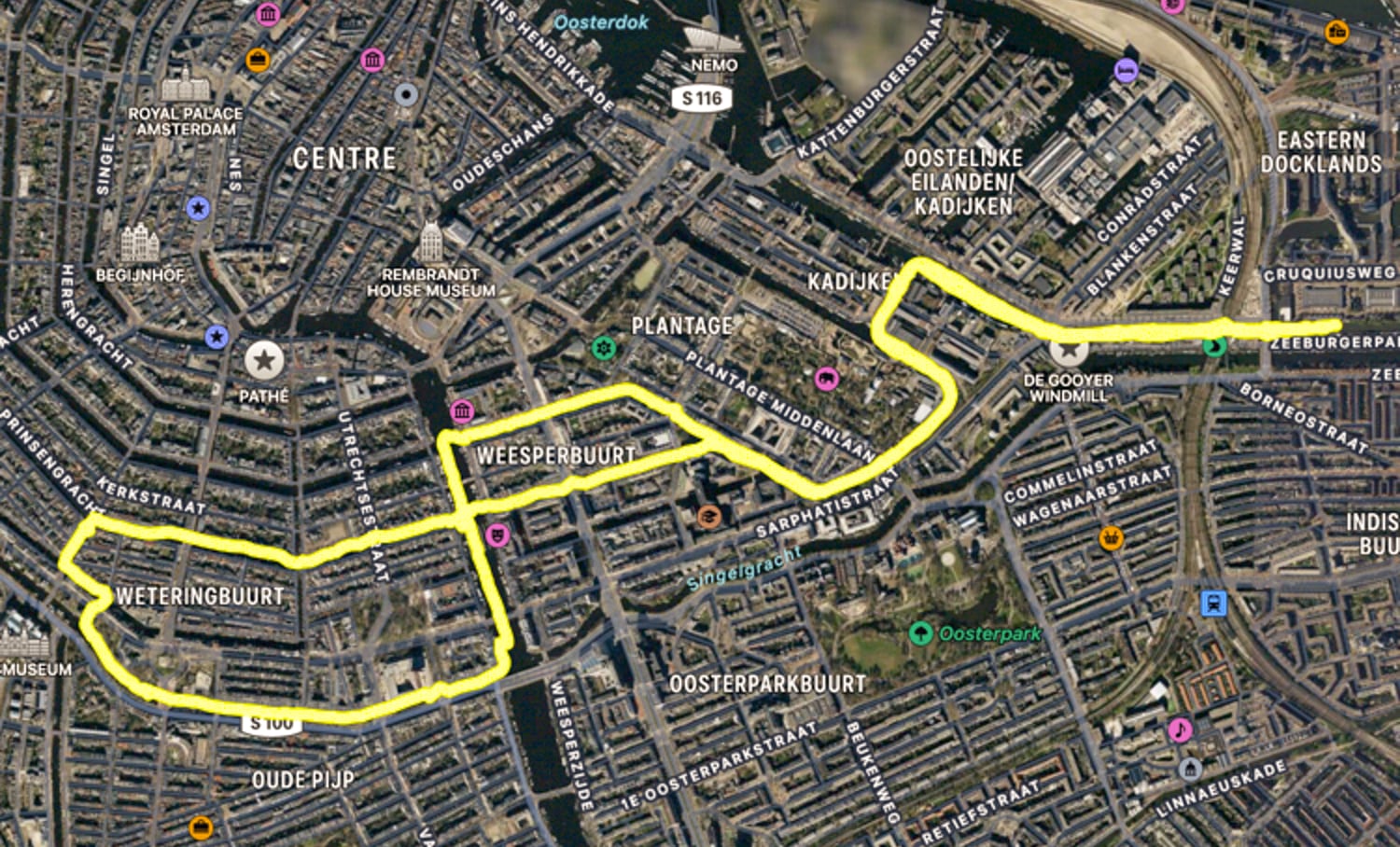 Mijn uiterste puntje werd het Rijksmuseum. Om van daar via de Prinsengracht weer langs Artis om terug op het honk te komen.