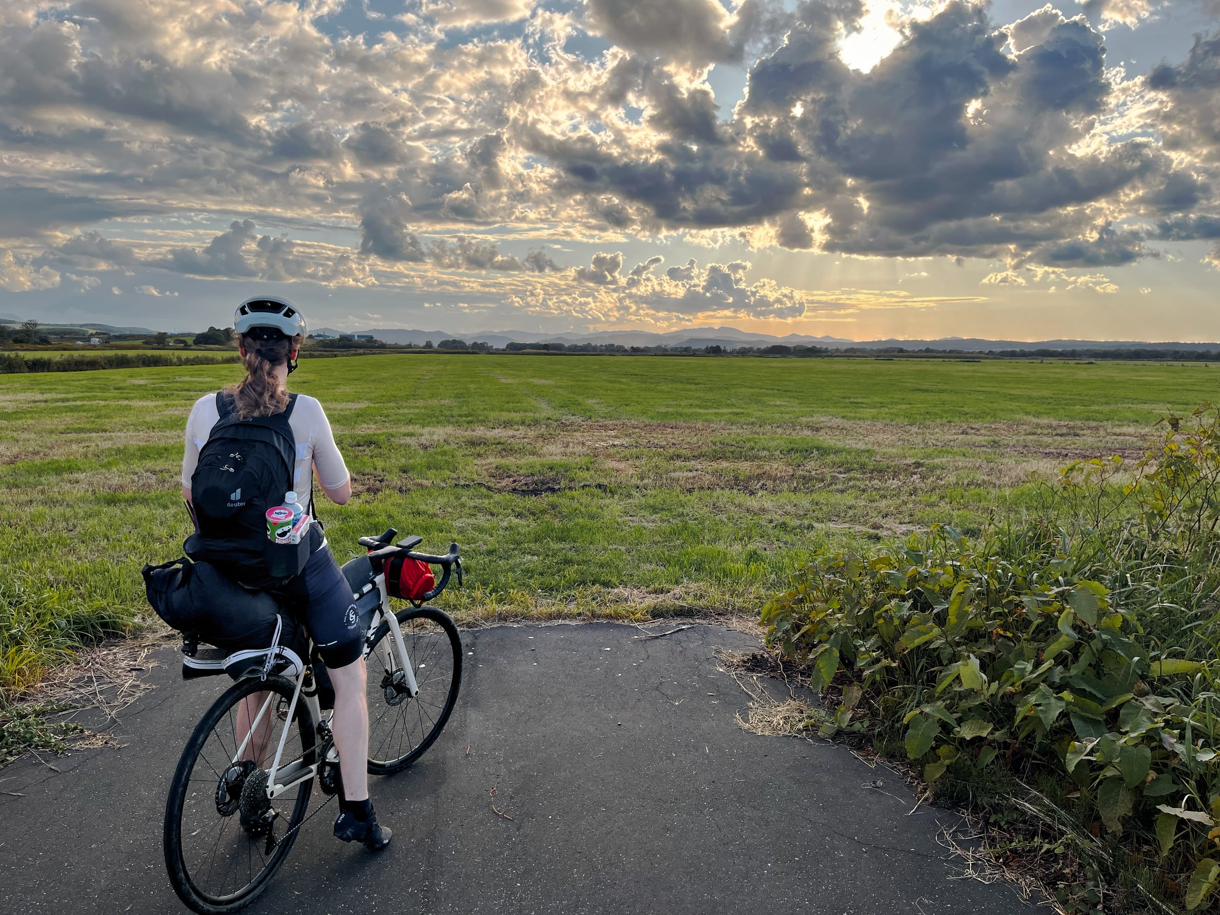 Van de bergen en heuvels naar de kust, het vlakke land en rechte wegen. Was gek om de laatste twintig kilometer bijna niet meer te hoeven klimmen of af te dalen. En door een brede delta te rijden met links en rechts stevig afgebakend met heuvels van formaat. Ben een snel te conditioneren mens. Het vlakke land voelt vreemd en tegelijkertijd beetje thuiskomen.
