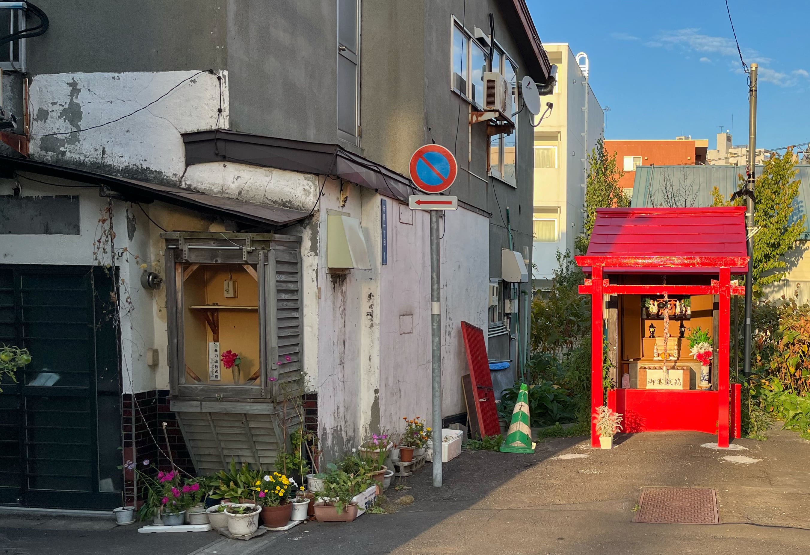 Daarna met mijn frisse hoofd verder gaan wandelen zonder specifiek doel. Toch nog tegen aardig wat aangelopen. Zoals een lege overdekte straat. Plastic eten wat je moet overtuigen dat het echte eten wat je kan bestellen lekker is. Een altaartje aan het eind van de straat en een kerk.
