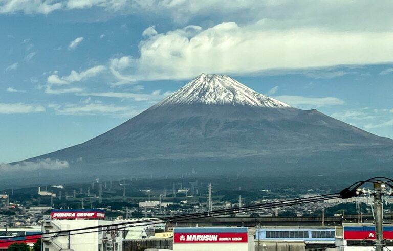 Mijn gereserveerde stoel zit toevallig aan de goeie kant waardoor ik ook nog een hele tijd kon genieten van Mount Fuji. Snap wel waarom die zo beroemd is. Het is een mooie unieke vulkaan.
