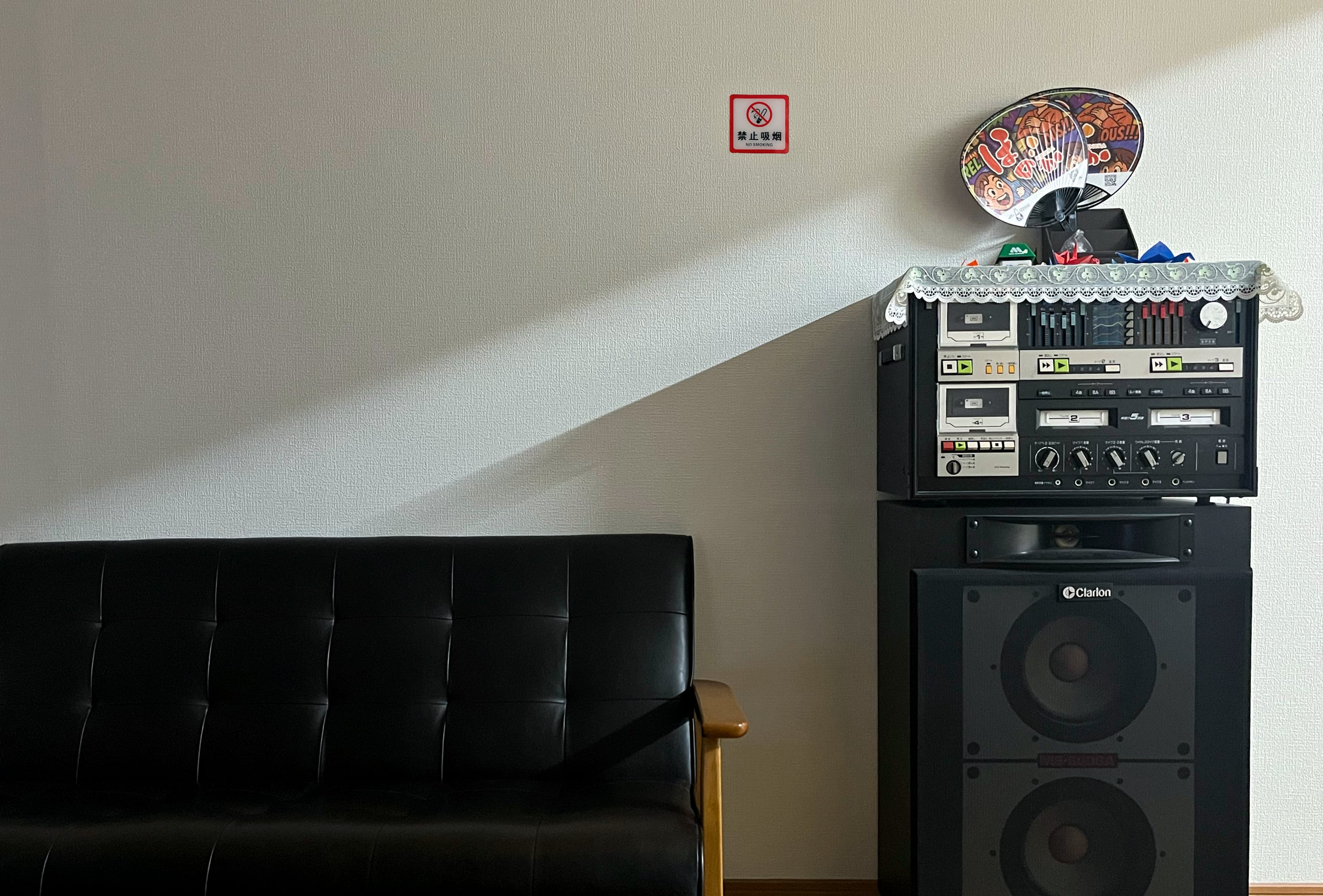 De stopcontacten in Japan zijn schattig maar ze zijn ook best onhandig omdat ze niet echt de zware stekkers en adapters vast houden zoals we dat in Nederland gewend zijn. Dus moeten we wat improviseren. De tent is net groot genoeg.