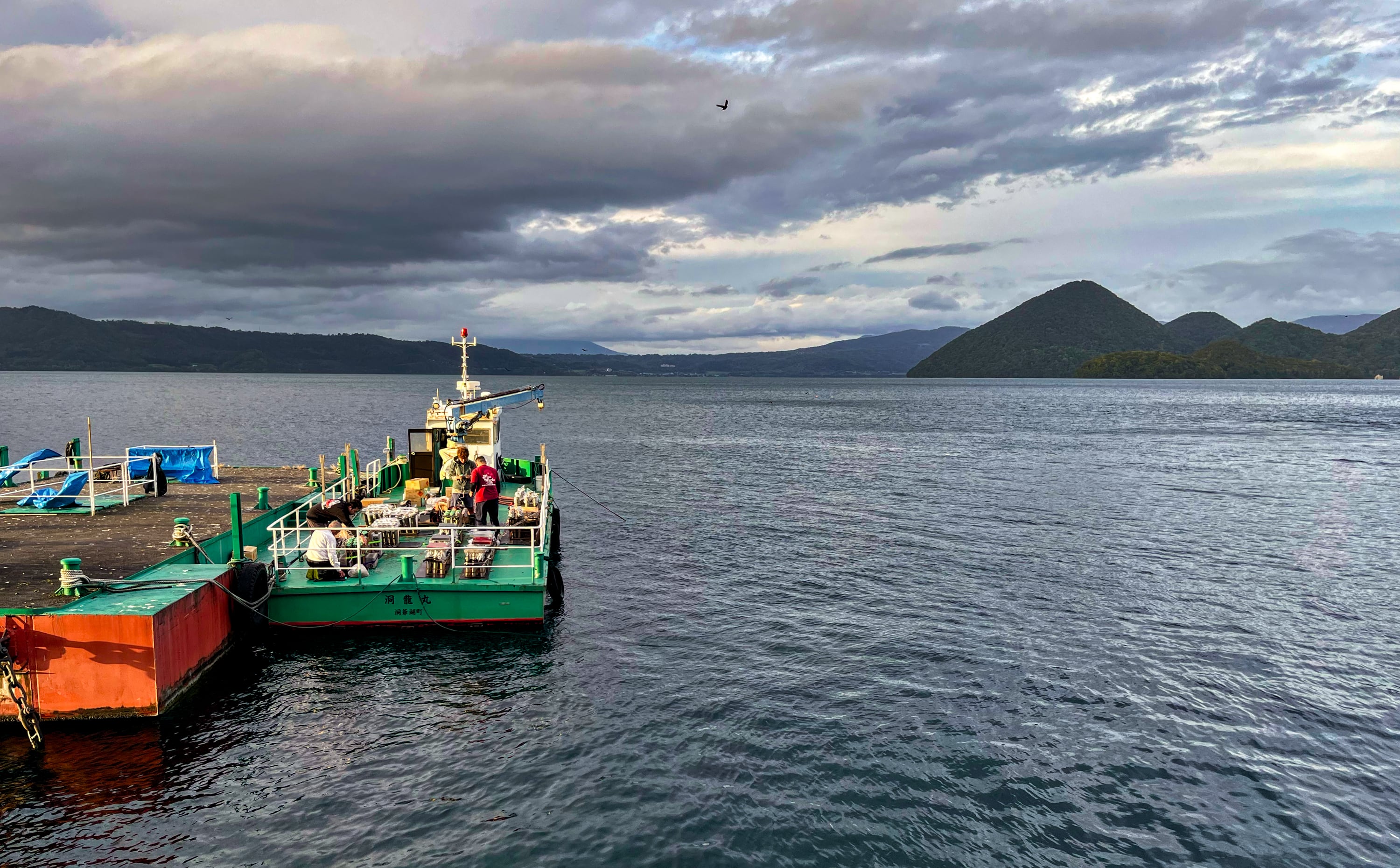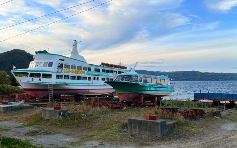 Kan mijn hobby hier in Japan maar weinig botvieren ondanks dat het een eiland is en ik aardig wat kustlijn heb afgefietst. Dus toen deze hongerige ogen deze op het droge tegen kwamen moesten ze op de foto. Zag me al met de groene wegvaren ondanks dat het geen catamaran is en Lake Tōya niet aansluit op ander water.