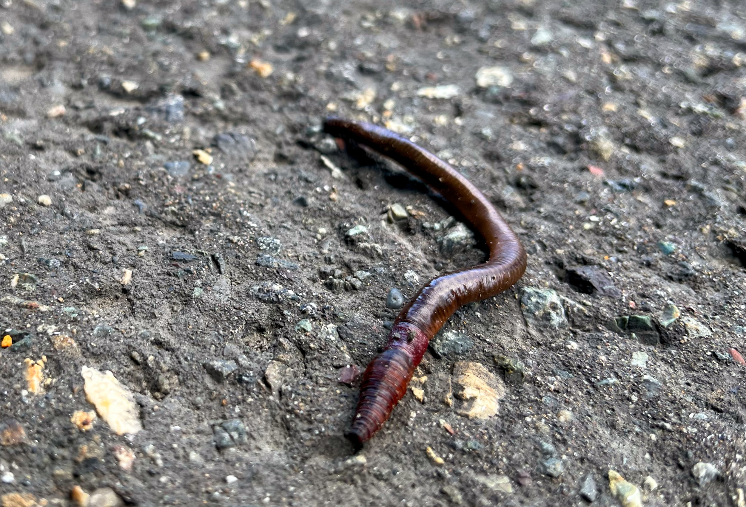 Vanaf de eerste dag dat we gingen fietsen viel me al op een halve meter op de (asfalt)weg er regenwormen liggen. Niet verder en niet dichterbij. En dat lijkt een patroon waar ik ook ben. Landschap, weer en hoogteverschil. Het maakt niet uit. Vandaag waren het er wel heel veel. Kom ik er anders drie of vier per fietstocht tegen nu denk ik wel twintig.